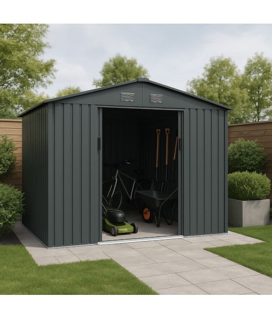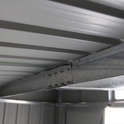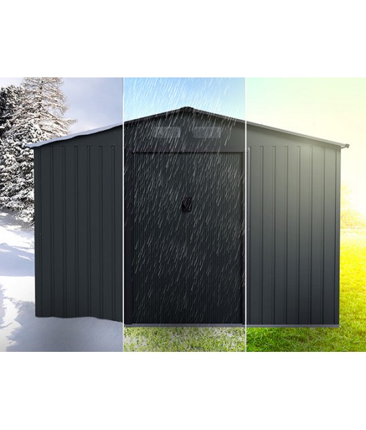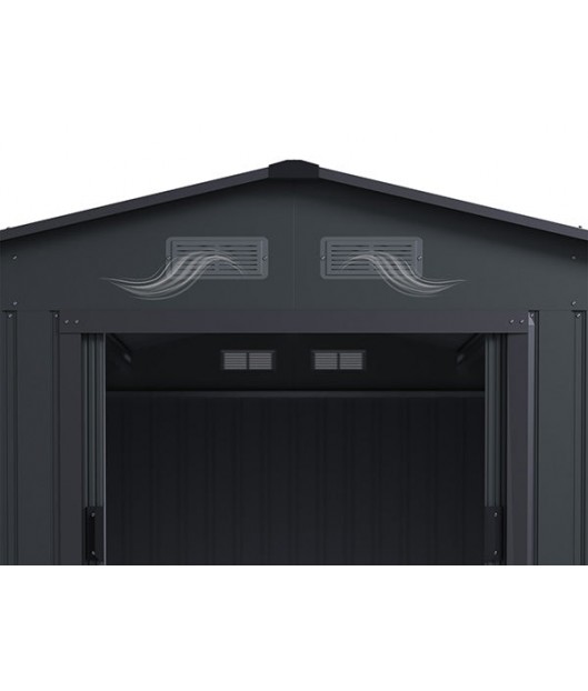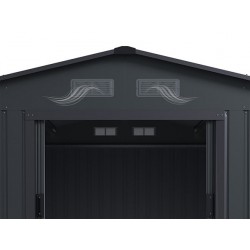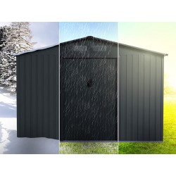 XL izmēra metāla šķūnis. Turpmāk Jums būs pietiekami daudz vietas, lai glabātu dārza rīkus, āra mēbeles un dārza aprīkojumu. Šķūnis lieliski pasargā tos no vēja un citiem sliktiem laikapstākļiem. Turklāt tas nodrošina arī aizsardzību no putekļiem un netīrumiem. Priekšmeti, kas tiek glabāti šķūnī ilgstoši paliek tīri un kalpo ilgāk. Mūsu metāla šķūņi ir izturīgi, un pateicoties cinkotajām tērauda lokšņu sienām, tie ir aizsargāti pret sliktu laikapstākļu negatīvo ietekmi, rūsu un skrāpējumiem. Metāla šķūni ir viegli tīrīt.