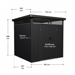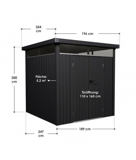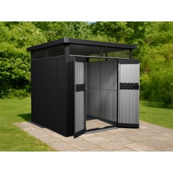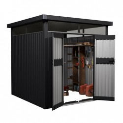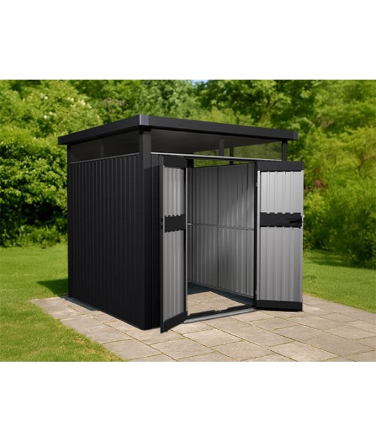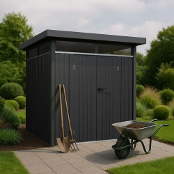 Atklājiet metāla dārza šķūni "LUZERN" antracīta krāsā kā ideālu risinājumu dārzam! "LUZERN" dārza šķūnis ar durvīm un logiem piedāvā pietiekami daudz vietas, lai glabātu dārza rīkus, āra mēbeles un dārza aprīkojumu. Pateicoties laikapstākļiem izturīgajai konstrukcijai no karsti cinkota tērauda un slēdzamajām durvīm, jūs vienmēr varat droši uzglabāt savas mantas. Turklāt tas nodrošina arī aizsardzību no putekļiem un netīrumiem. Priekšmeti, kas tiek glabāti šķūnī ilgstoši paliek tīri un kalpo ilgāk.