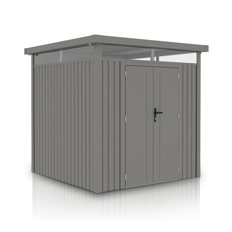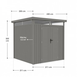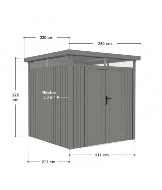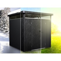 Atklājiet metāla dārza šķūni "LUZERN PRO" antracīta krāsā kā ideālu risinājumu dārzam! "LUZERN PRO" dārza šķūnis ar durvīm un logiem piedāvā pietiekami daudz vietas, lai glabātu dārza rīkus, āra mēbeles un dārza aprīkojumu. Pateicoties laikapstākļiem izturīgajai konstrukcijai no karsti cinkota tērauda un slēdzamajām durvīm, jūs vienmēr varat droši uzglabāt savas mantas. Turklāt tas nodrošina arī aizsardzību no putekļiem un netīrumiem. Priekšmeti, kas tiek glabāti šķūnī ilgstoši paliek tīri un kalpo ilgāk.