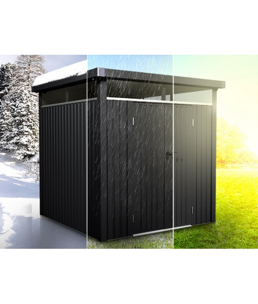 Dārza šķūņi "LUZERN PRO" ir izturīgi, un pateicoties cinkotajām tērauda lokšņu sienām, tie ir aizsargāti pret sliktu laikapstākļu negatīvo ietekmi, rūsu un skrāpējumiem. Vai nu kā velosipēdu garāža, vai dārza nojume – šis produkts pārliecina ar savu daudzpusību un izturību.