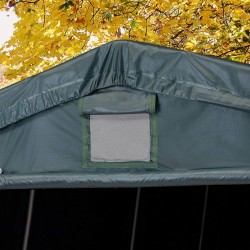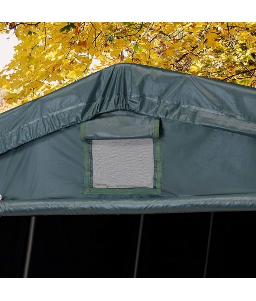 Augstas kvalitātes tents ir izgatavots no PE 600 N materiāla - viena no labākajiem pieejamajiem materiāliem. Tents ir 100 % ūdensizturīgs, pateicoties augstā temperatūrā metinātiem šuvēm, kā arī aizsargā pret UV starojumu. Jumta pārsegs izgatavots no viena gabala, kas ir svarīgi vispārējai stabilitātei.