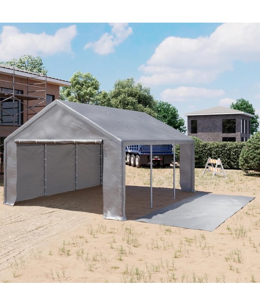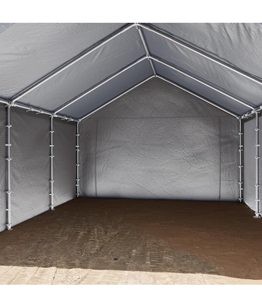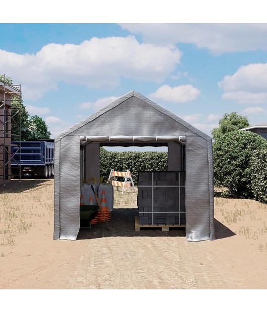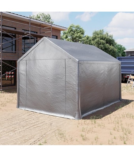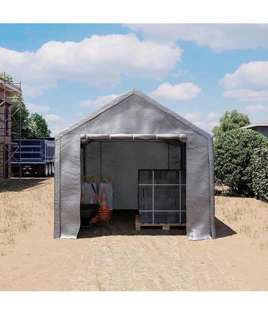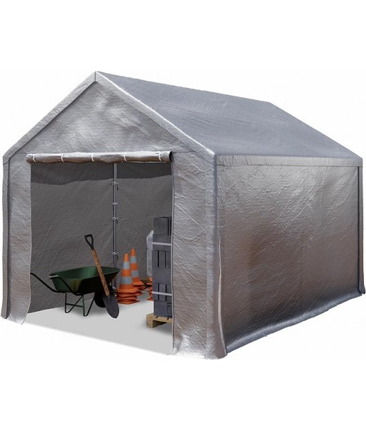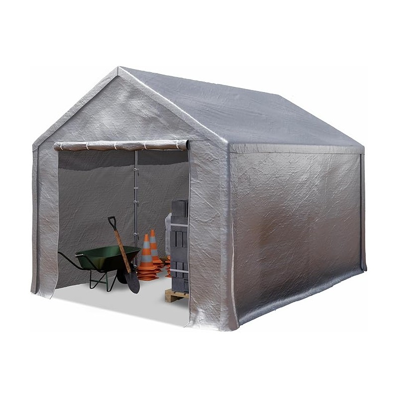 Uzglabāšanas garāžas-teltij ir izturīga cinkota tērauda konstrukcija ar 42 mm tērauda cauruļu savienotāju. Visas caurules ir krāsotas ar augstas kvalitātes pulverkrāsu.