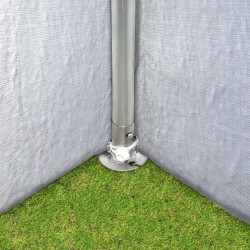 Augstas kvalitātes tents ir izgatavots no 350N PE materiāla - viena no labākajiem pieejamajiem materiāliem un 100% ūdensnecaurlaidīgs, kā arī aizsargā pret UV starojumu. Viegli salokāms, izturīgs pret plīsumiem, nodilumu un viegli tīrāms. Telts specifikācijas ir pārbaudītas un apstiprinātas Vācijas institūtā saskaņā ar noteiktiem standartiem. Jumta pārsegs izgatavots no viena gabala, kas ir svarīgi vispārējai stabilitātei.