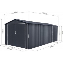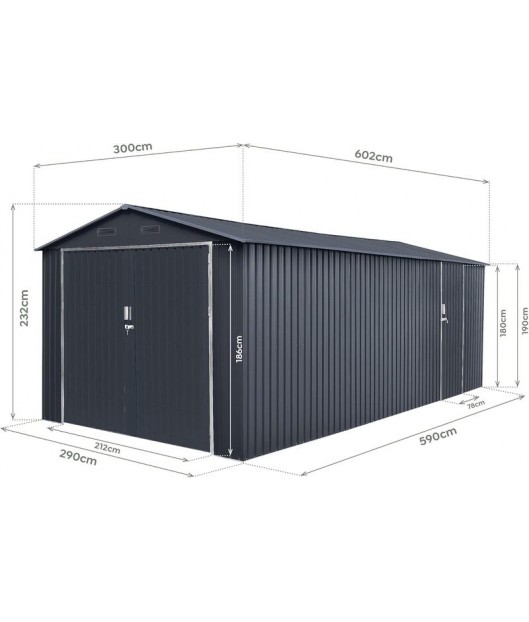 CINKOTA METĀLA GARĀŽA jūsu automašīnas, motocikla vai pat lavas aizsardzībai no sliktiem laika apstākļiem. CINKOTA METĀLA GARĀŽA ir platas durvis, kas atvieglo transportlīdzekļu iebraukšanu garāžā. Papildu ērtībai garāžas sānos ir izejas durvis. Sienas un jumts ir izgatavoti no cinkota lokšņu tērauda un rāmis ir izgatavots no cinkota tērauda. METĀLA GARĀŽAI ir divas durvis (galvenais durvis un sānu durvis) un 4 ventilācijas atveres.