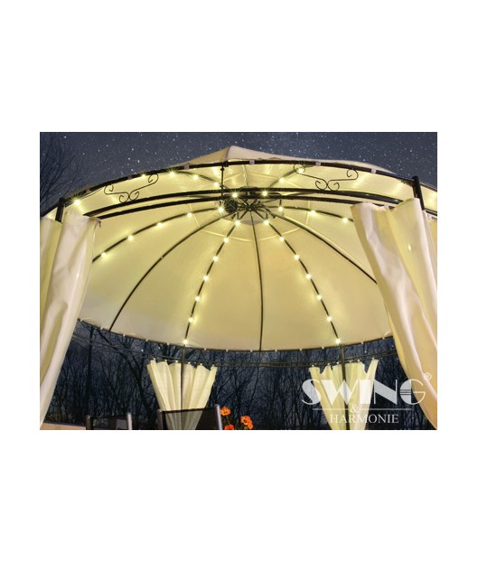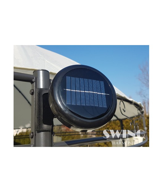 Dārza nojume ar LED apgaismojumu ar 42 gaismas diodēm, kuras var manuāli ieslēgt un izslēgt. Tam ir iebūvēts uzlādējams akumulators, kuru uzlādē saules enerģija.