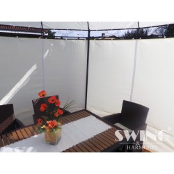 Iespējams pasargāt sevi no saules, vēja un nevēlamiem skatieniem ar viegli regulējamām sānu sienām. Rāvējslēdzēji atvieglo sānu sienu atvēršanu un aizvēršanu.