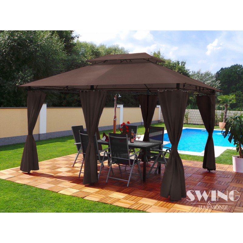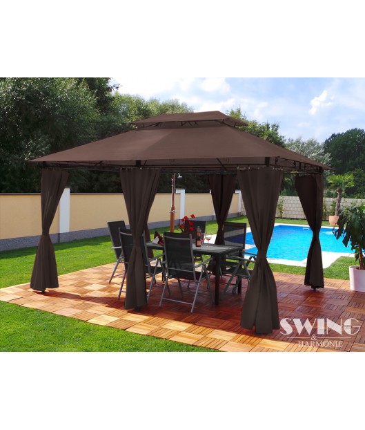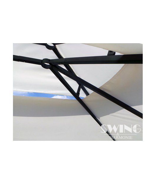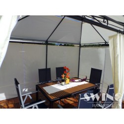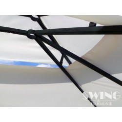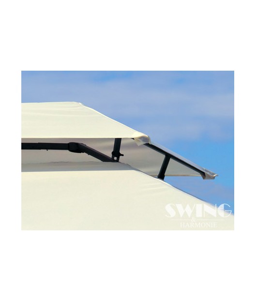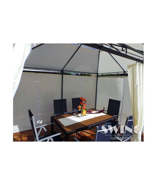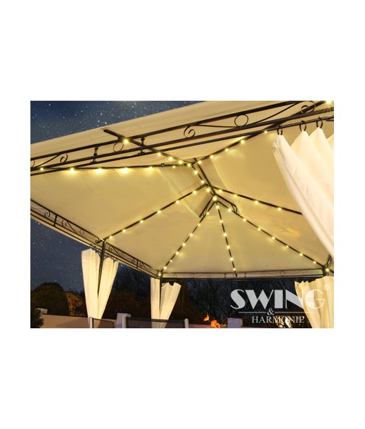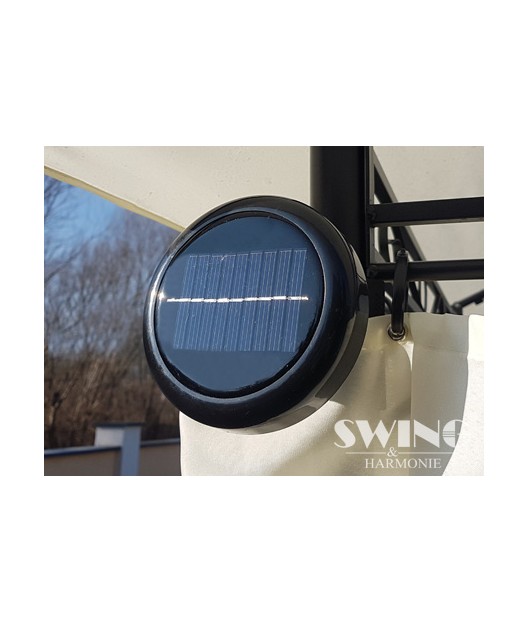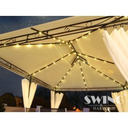 Izbaudiet skaistas saulainas dienas un mājīgus vasaras vakarus savā greznajā dārza nojumē! Jumts ir lietus necaurlaidīgs. Šajā modernajā dārza nojumē ir arī LED apgaismojums ar 60 LED spuldzītēm, kuras var manuāli ieslēgt un izslēgt. Tam ir iebūvēts uzlādējams akumulators, kuru uzlādē saules enerģija.