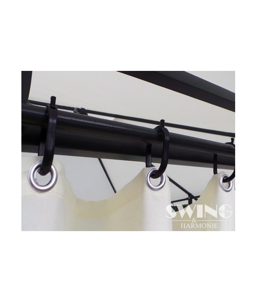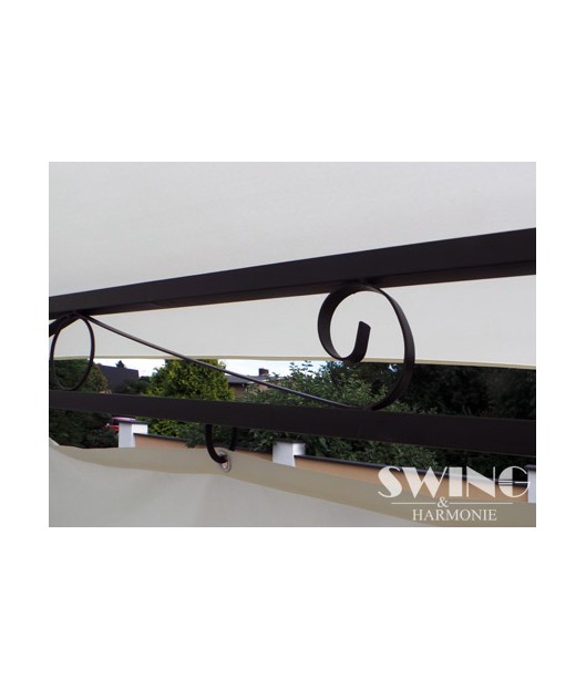 - Pulverkrāsotais rāmis ir dekorēts ar grezniem rotājumiem, piešķirot dārza nojumei izteiksmīgu dizainu un greznību;