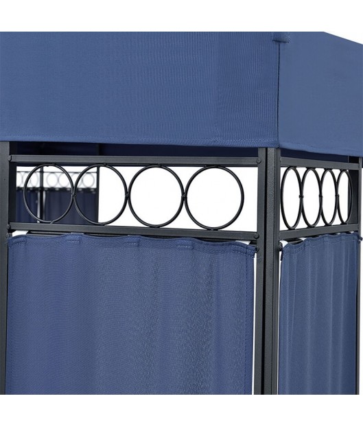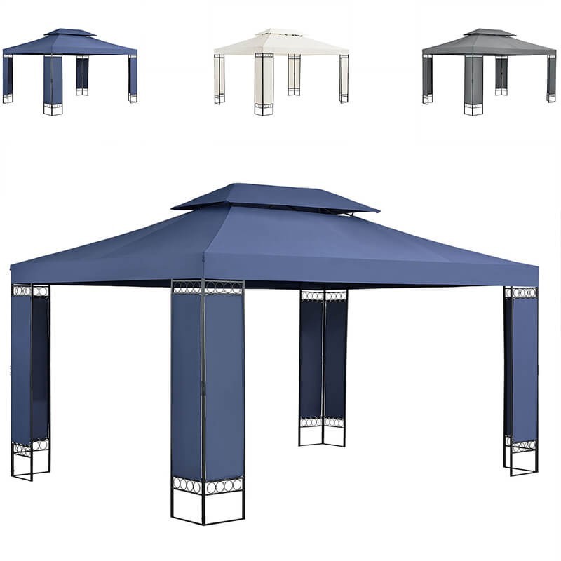 Eleganta dārza nojume „CAPRI“ ar izturīgu metāla rāmi un dekoratīvu divpakāpju jumtu.