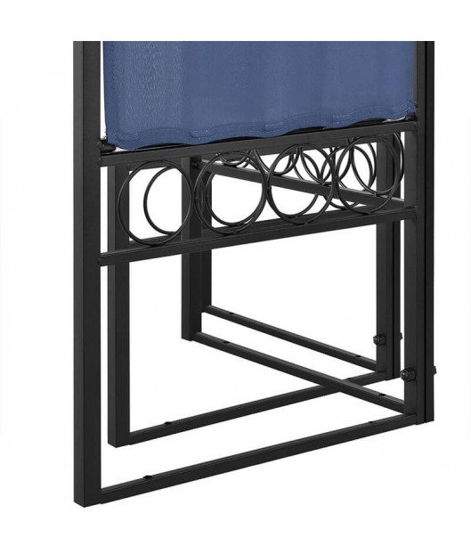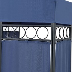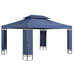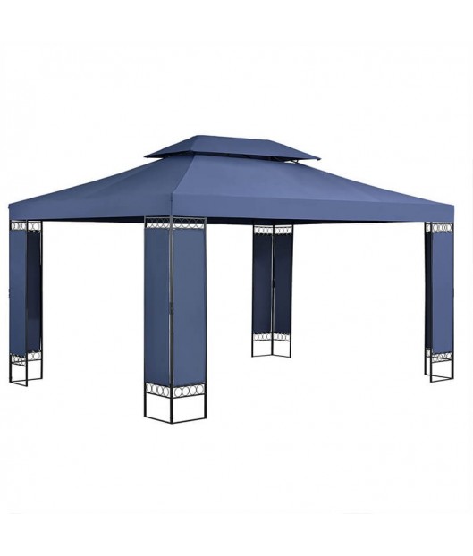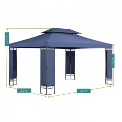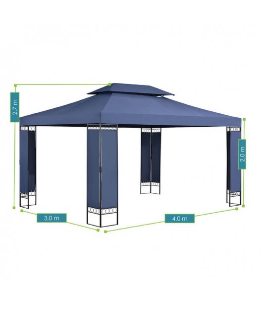 Dārza nojumes divpakāpju jumts, apgrieztas kājas un dekoratīvie rotājumi rada mūsdienīgu un greznu atmosfēru. Stingrās, pieskrūvētās metāla konstrukcijas nodrošina stabilitāti. Pateicoties īpašajam pulvera pārklājumam, nojumes kājas ir labi aizsargātas no laika apstākļiem, korozijas vai triecieniem. No šīs dārza nojumes var viegli notīrīt putekļus un netīrumus. Jumts un sānu pārsegs ir izgatavots no ūdensnecaurlaidīga poliestera. Pagarināts divpakāpju jumts nodrošina pastāvīgu gaisa cirkulāciju dārza nojumē.