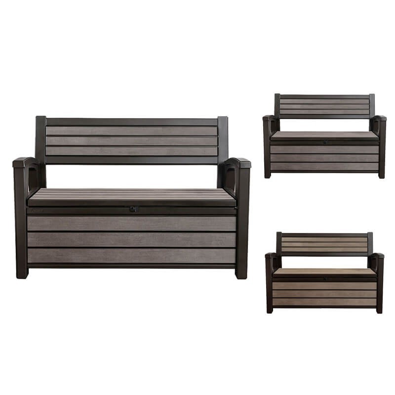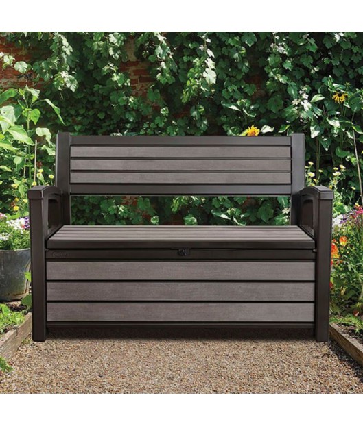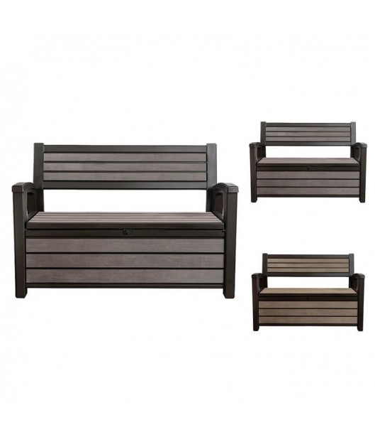 Sols/glabāšanas kaste KETER HUDSON ir oriģināls risinājums vietas trūkuma gadījumā. Plašajā glabāšanas nodalījumā ērti var ievietot segas, spilvenus vai nelielu dārza aprīkojumu. KETER HUDSON sola/glabāšanas kastes virsma, kas atgādina koka faktūru, ļauj glabāšanas kasti saskaņot ar jebkuru dārza izkārtojumu. Sols ir izturīgs pret laika apstākļiem, un ir izgatavots no augstas kvalitātes materiāliem.