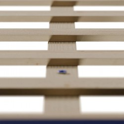 Stingri apstrādāts gultas rāmis ir izgatavots no cieta MDF. Izturīgs materiāls nodrošina stabilitāti un ilgu kalpošanas laiku. Ir ļoti viegli notīrīt putekļus un netīrumus ar tīru, mitru drānu, kas samitrināta maigā ziepjūdenī.