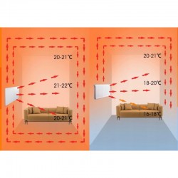 Atšķirībā no parastajiem sildītājiem infrasarkanais sildītājs neizstaro siltuma starojumu tikai uz telpas gaisu. Tā lielāko daļu siltuma nodod tieši apkārtnē esošajiem priekšmetiem un ķermeņiem. Šis siltums tiek uzkrāts daudz labāk nekā gaiss un nodrošina siltumu videi ilgāku laiku. Šādā veidā jūs ietaupīsiet daudz enerģijas. Tā ir arī priekšrocība: siltumu var sajust jau pēc dažām sekundēm. Pateicoties tiešai siltuma pārvadei, mēs varam sajust siltumu pat pie zemas apkārtējās vides temperatūras. 100% klusa darbība nodrošina visaugstāko lietošanas komfortu. Tas netraucē ikdienas aktivitātēm, pat guļot.