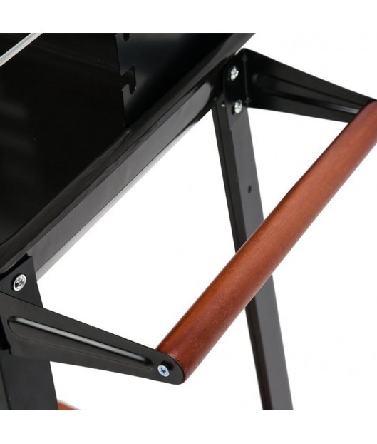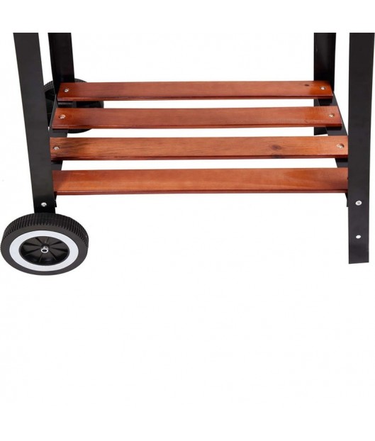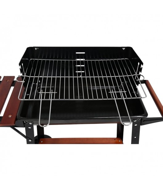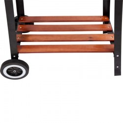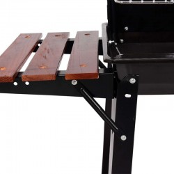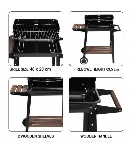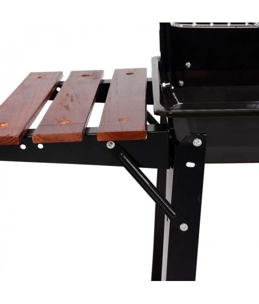 Grila sānā ir koka plaukts, uz kura var novietot gatavus ēdienus, bet apakšējā plauktā – grila piederumus vai ogles. Pateicoties ērtajai rokturī un plastmasas riteņiem, grilu var viegli pārvietot uz citu vietu.