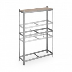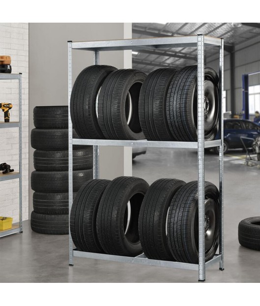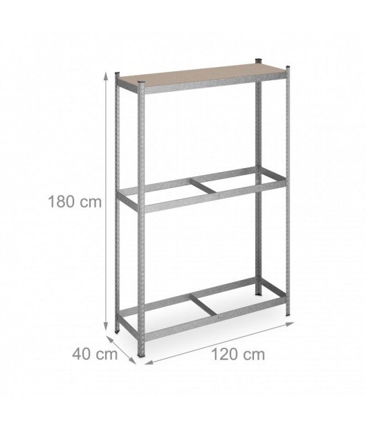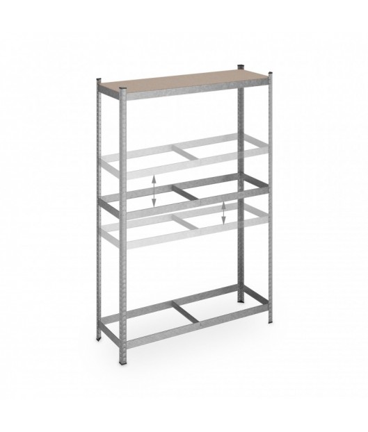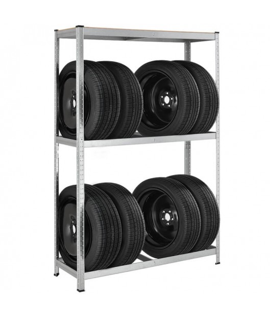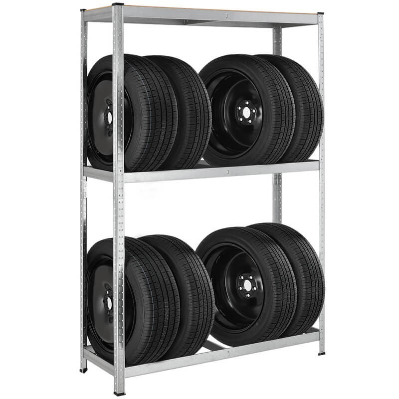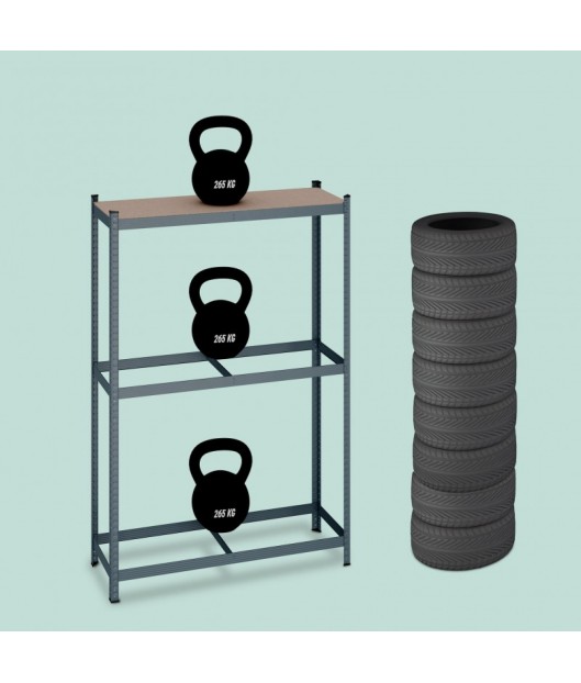Riepu glabāšanas plaukti, kurus var izmantot pagrabā, garāžā, noliktavā vai veikalā. Plaukti ir izgatavoti no cinkota metāla un MDF plāksnēm. To salikšana ir ļoti ātra un vienkārša. Katra nodalījuma celtspēja ir 265 kg.