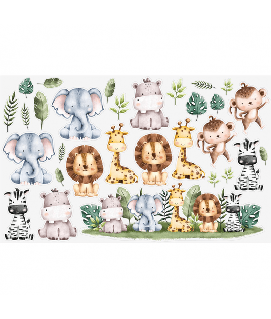 Piezīme: dekorācijas un grāmatas nav iekļautas. Pievienots uzlīmju lapas ar safari dzīvniekiem. Uzlīmes, ja nepieciešams, var tīri noņemt.