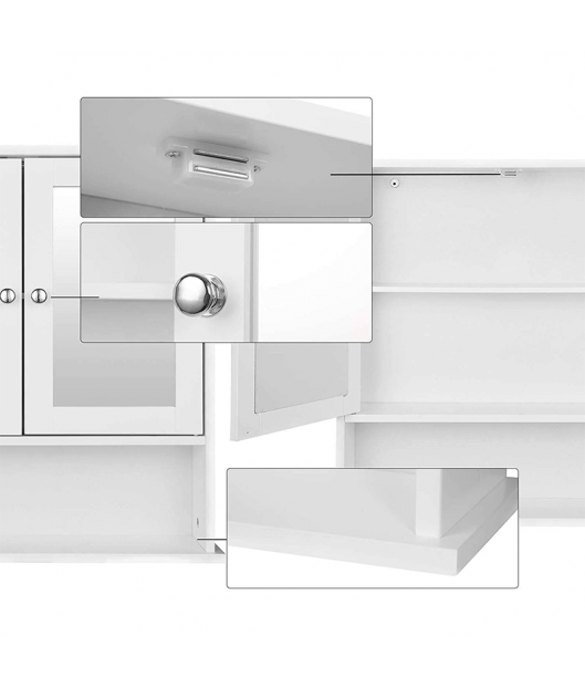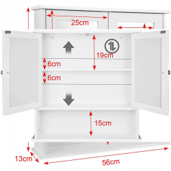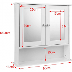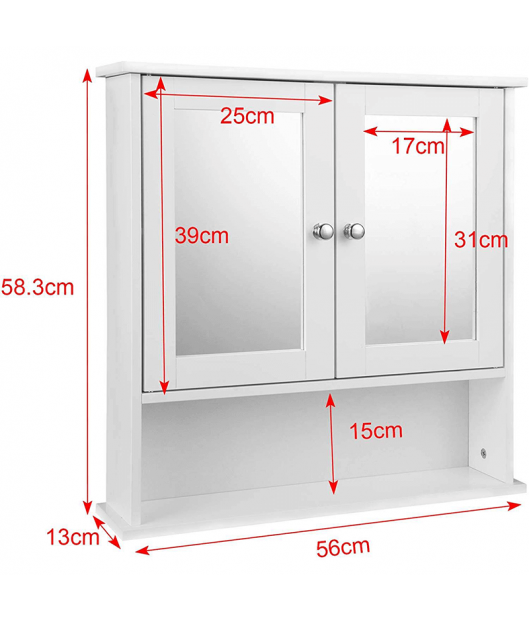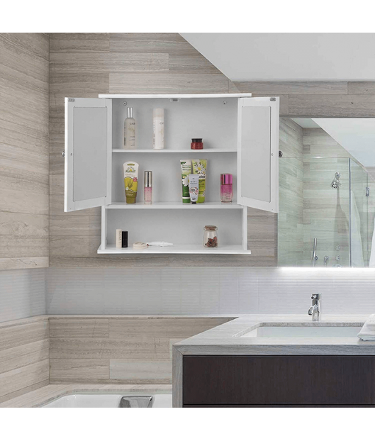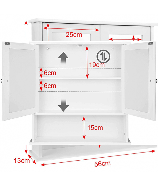 Piekaramais vannas istabas skapis ir aprīkots ar lielu spoguli, un to viegli var pielāgot gan lielām, gan mazām vannas istabām. Skapis ir izgatavots no izturīgām MDF plātnēm, kas nodrošina tā izturību un ilgmūžību. Speciāli apstrādātā virsma padara to īpaši viegli kopjamu.