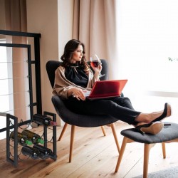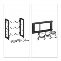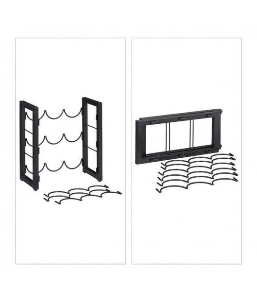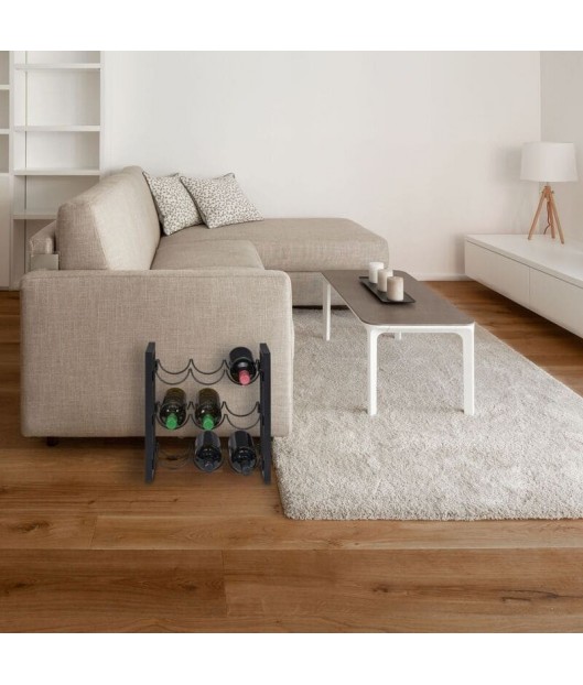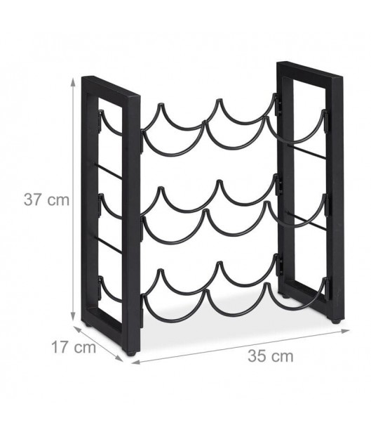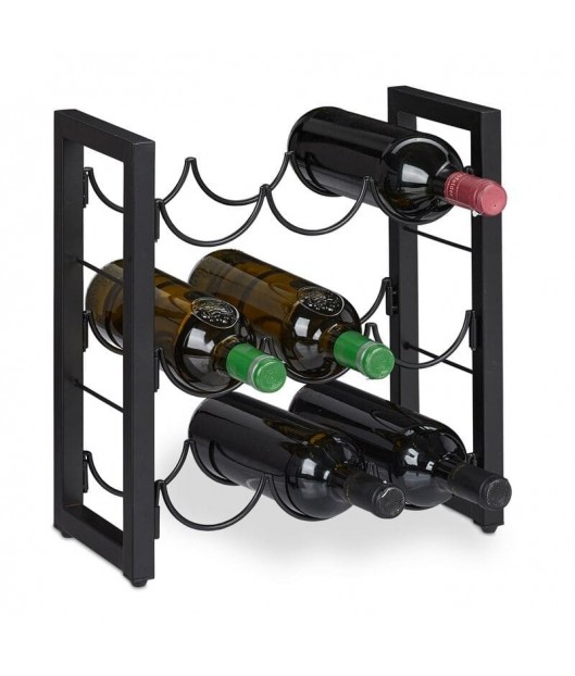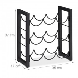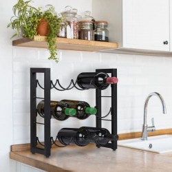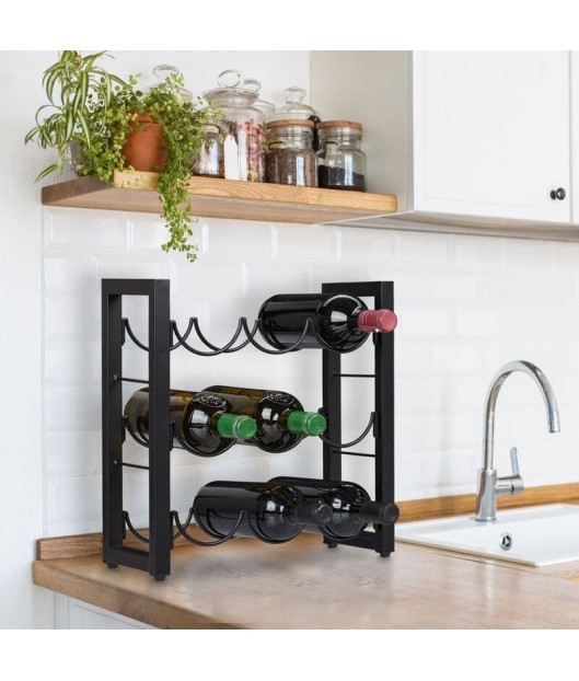 Metāla, melnā krāsā vīna plauktā var novietot 9 standarta izmēra pudeles. Pateicoties horizontālajai novietošanai, korķi neizžūst, tādējādi ilgāk saglabājot vīna pilnīgo garšu. To var uzstādīt gan virtuvē, gan mājas bārā vai viesistabā.